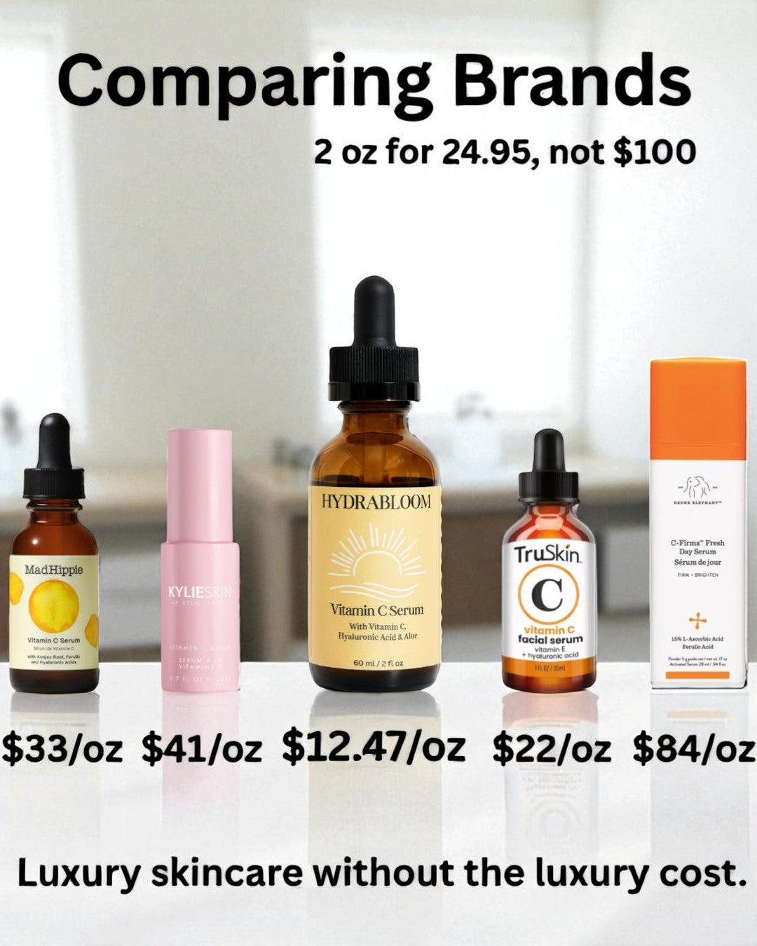 HydraBloom delivers the same Vitamin C power as luxury brands — at just $24.95. Real results. Honest price.”